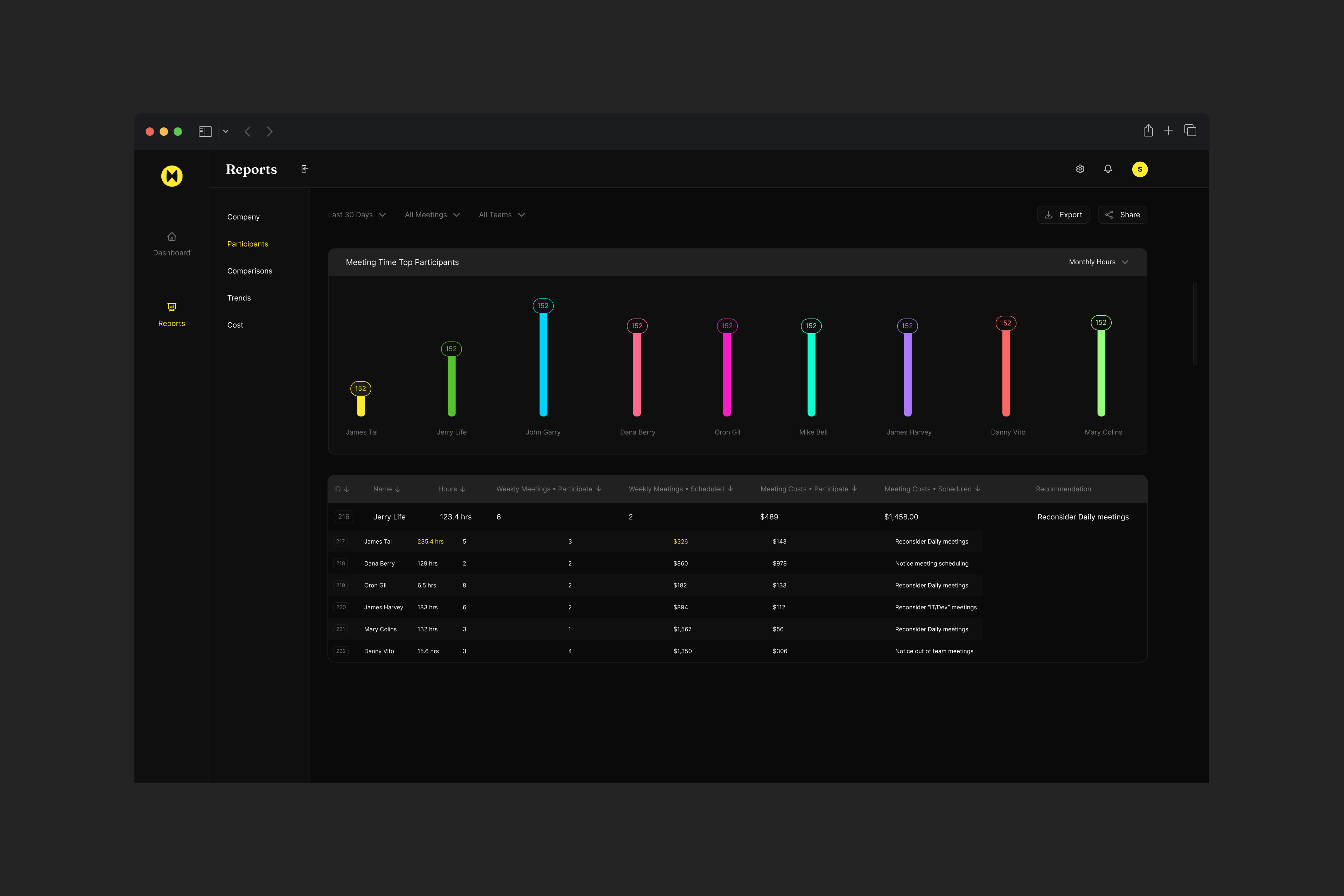I recognized the importance of providing managers with actionable insights to help them improve their meeting habits and time usage. I designed clear and concise data visualizations that presented meeting data in an easily understandable format. These insights empowered managers to identify areas for improvement and make informed decisions about their meeting practices.